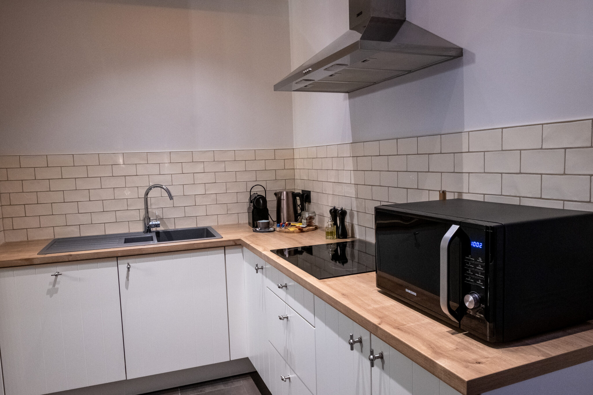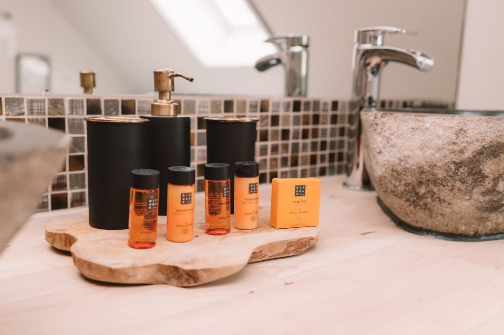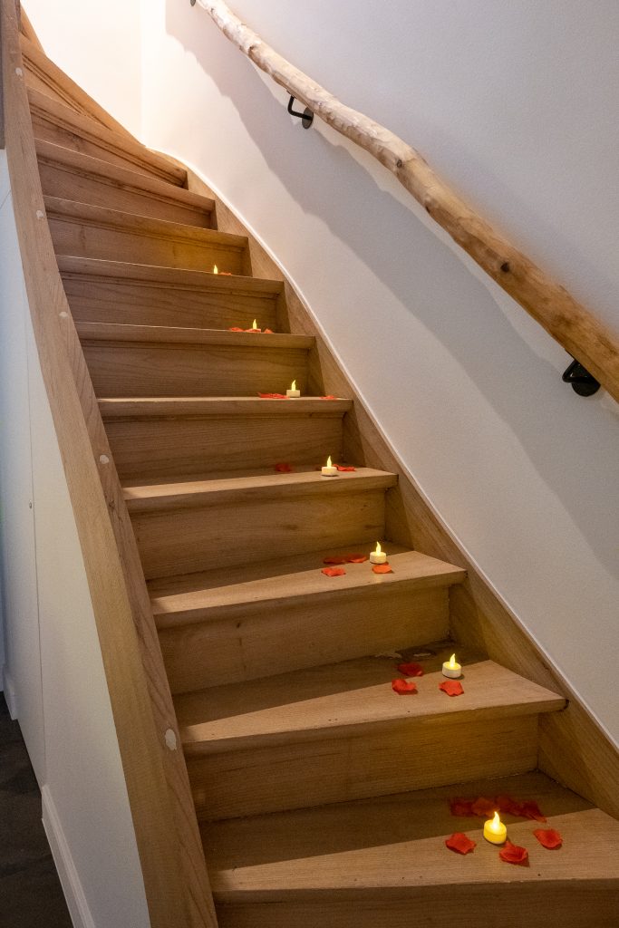 The ground floor consists of a cosy living area, kitchen and separate toilet. Settle down in the comfortable sofa, enjoy your favourite Netflix series, play a board game, surf the iPad or snuggle up in the reading corner with a good book. Furthermore, the kitchen has everything you could possibly need: fridge-freezer, cooker, dishwasher, microwave, oven and cooking utensils. And of course… a Nespresso coffee machine to start the day with a warm boost.