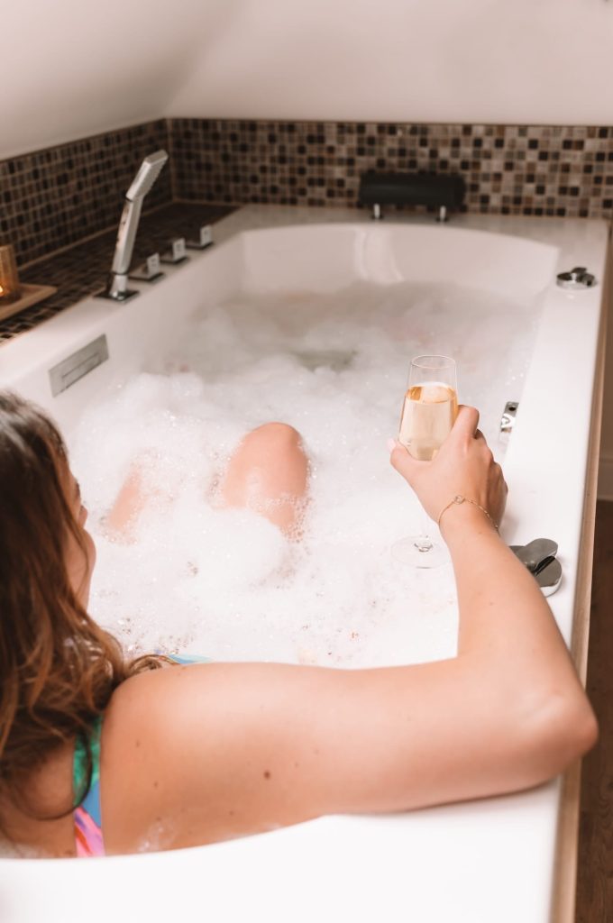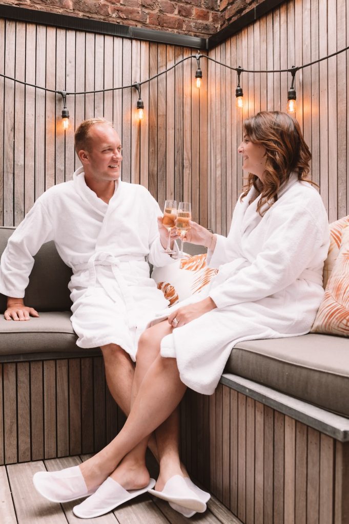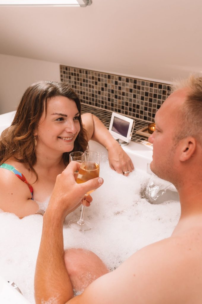A private bathroom with a spa? Yes, please! Let your worries melt away in the Finnish sauna, pamper your skin with heat and sunlight in the sun shower and sip a glass of bubbles in the bubbling jacuzzi. A second toilet is also located here. Wellness is included in your stay 24/7. A real spa experience, all to yourself!